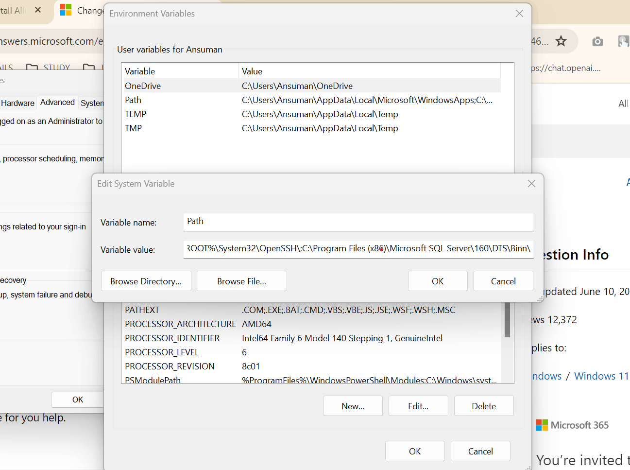 I'm trying to add a new path variable, but when I navigate to "Edit system environment variables" -> under System Variables -> Path, the popup that should open when I click on the Path variable isn't opening.