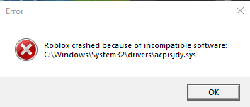 The error you're encountering suggests that there might be an incompatibility between this system file and Roblox, causing the game to crash.