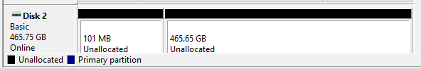 Both drives had 3 partitions; An EFI System partition (100MB), Windows 11 Home partition (465 GB) and a Recovery Partition ((610MB)