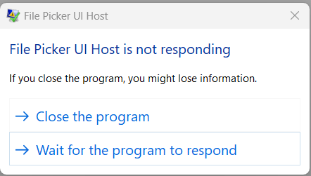 Please check if the same error appears in any other Store app. For example, see if the error occurs when taking a snip using the Snipping Tool (Win + Shift + S) and saving the image from the Snipping Tool. That way, we can determine if the problem is with pickerhost.exe or the WhatsApp app.