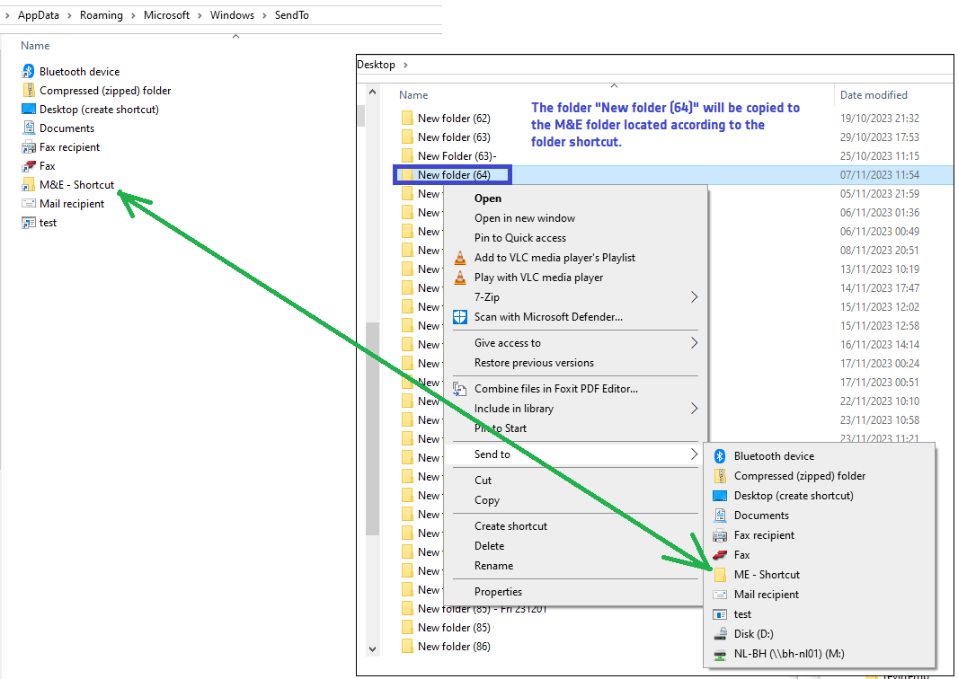I can paste any folder shortcut into the folder and it works. A SendTo menu appears with the shurtcut links where I can send the files, but I don't know how to make a shortcut to get the location from the clipboard location.