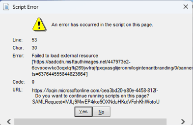According to your description, the problem occurs when loading external resources for a script, which is reported as "An error occurred in the script on this page and the external resources could not be loaded". This is usually related to compatibility issues, which may be due to browser settings, extension conflicts, or problems with the external resource itself. From the error screen, this appears to be an error message generated when inserting an image.
