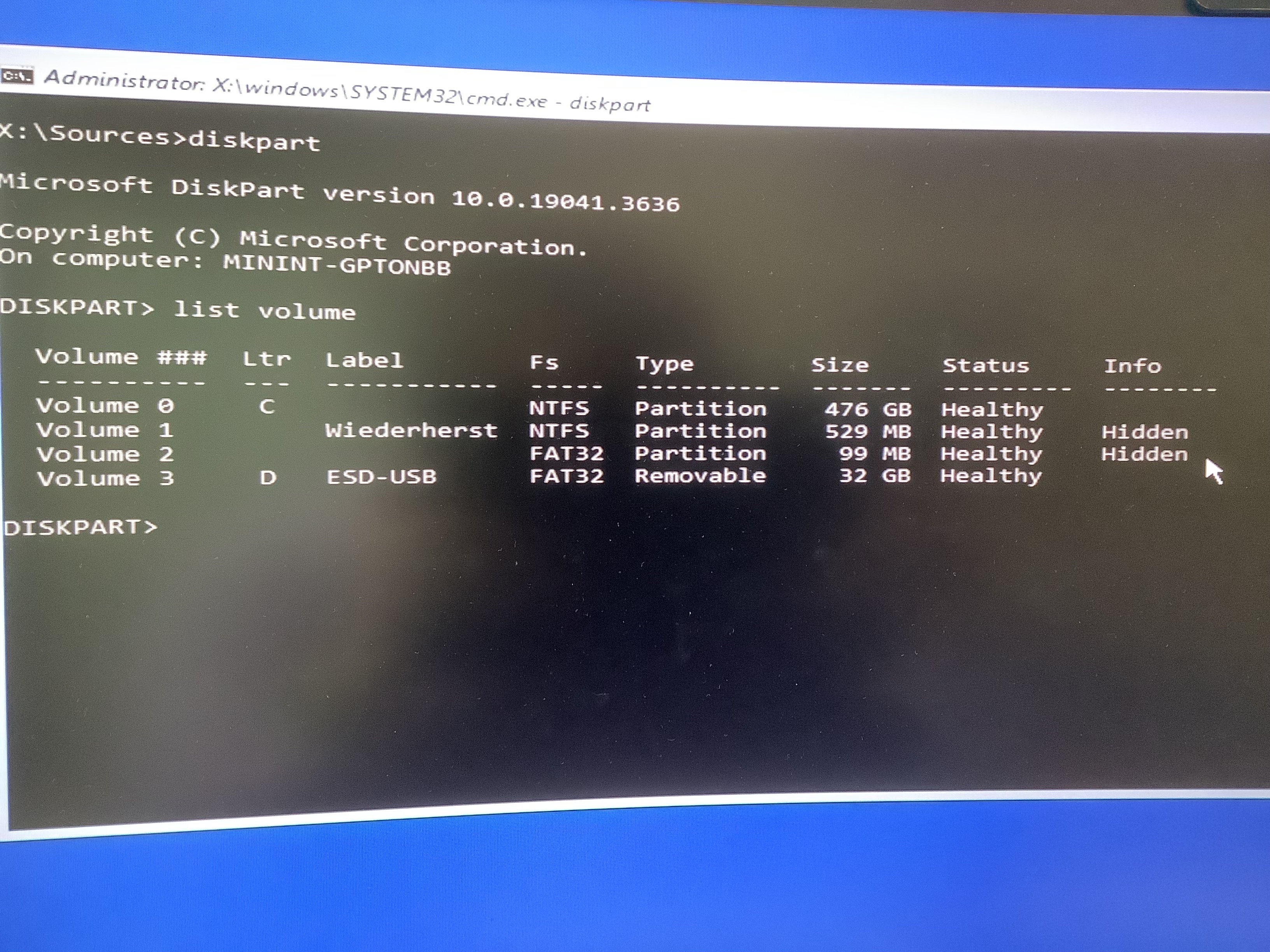 Here is a photo (Wiederherst —> beginning of the word recovery in german)