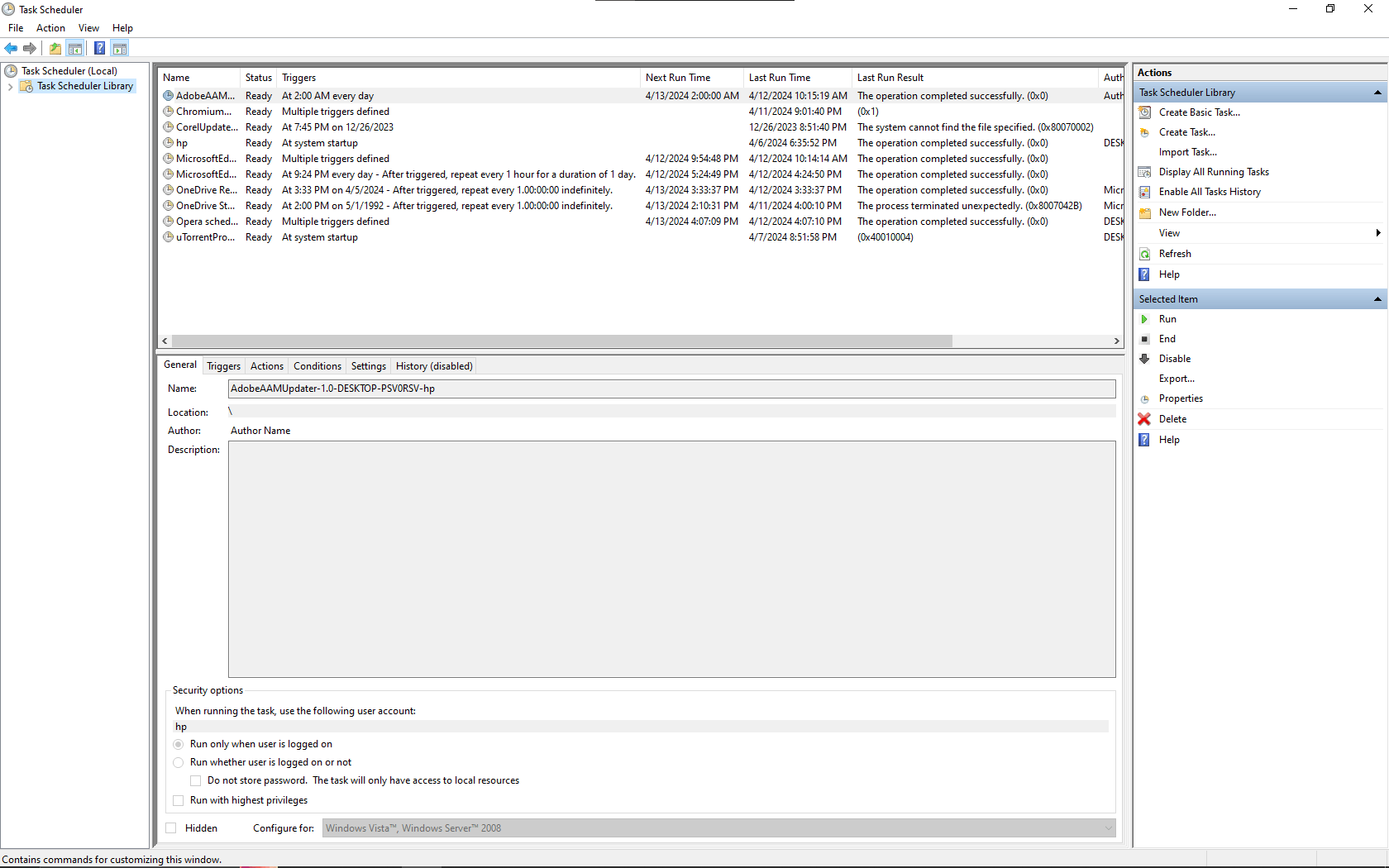 - Double-click on the "hp" task to open the properties window;