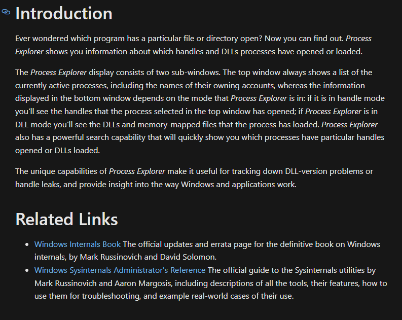 For detailed tips on using Process Explorer, you may want to consult a more experienced community.