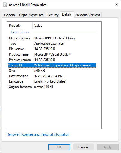 2024-02-10T02:40:29+00:00 I thought of a possible solution, I can directly move the msvcp140.dll file in someone else's windows11 system to the "C:\Program Files\WindowsApps\Microsoft.VCLibs.140.00.UWPDesktop_14.0.33519.0_x64__8wekyb3d8bbwe" folder