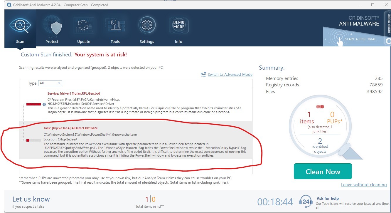 The virus is so sophisticated that also Microsoft Defender when I scan with PC Manager is able to detect it, but Microsoft Defender is not able to delete it. The PowerShell virus is like this. Look at the screenshot of GridinSoft Anti-Malware that I attached to You because GridinSoft Anti-Malware is also able to detect the virus but not able to delete it. GridinSoft Anti-Malware says you have to reboot your Computer then we will delete the virus but, after the reboot and one new scan with GridinSoft Anti-Malware that is supported by one antivirus and Computers security in Israel. After the reboot and one new scan with GridinSoft Anti-Malware the PowerShell virus is still there. Nor GridinSoft Anti-Malware nor Microsoft Defender is able to delete this PowerShell virus. They only can detect it try to delete but, they cannot delete it. The exact name and where the virus is you have in the screenshot of GridinSoft Anti-Malware.