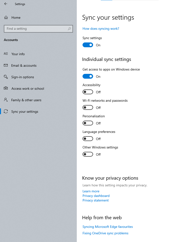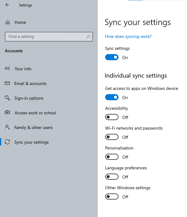 Everytime I restart my PC (which only use local account and not signed to any microsoft account, neither Onedrive), the toggle on Sync settings and Get access to apps on Windows device (Settings - Accounts - Sync your settings) always turned on by itself.