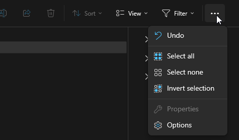 - Click the three dots in the command bar and select 'Options'