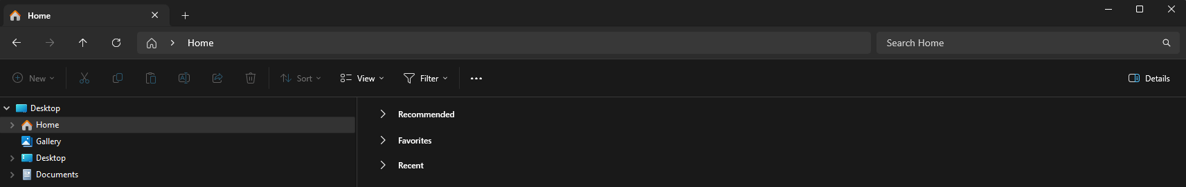 - Result (Now when 'Home' is selected Quick Access is shown to the right)