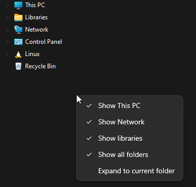 - Right-click on free space in the left navigation pane to open context menu
