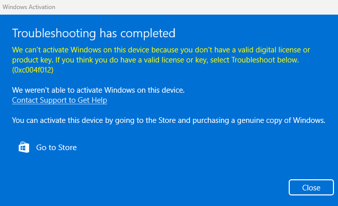 I cleaned the Windows Update Cache, and nothing changed so I did the in-place upgrade and now it says my Windows 11 isn't activated and when I click on the trouble shoot button under Activation State I get this message. (Edit: Windows 11 is activated, and DISM still doesnt work)