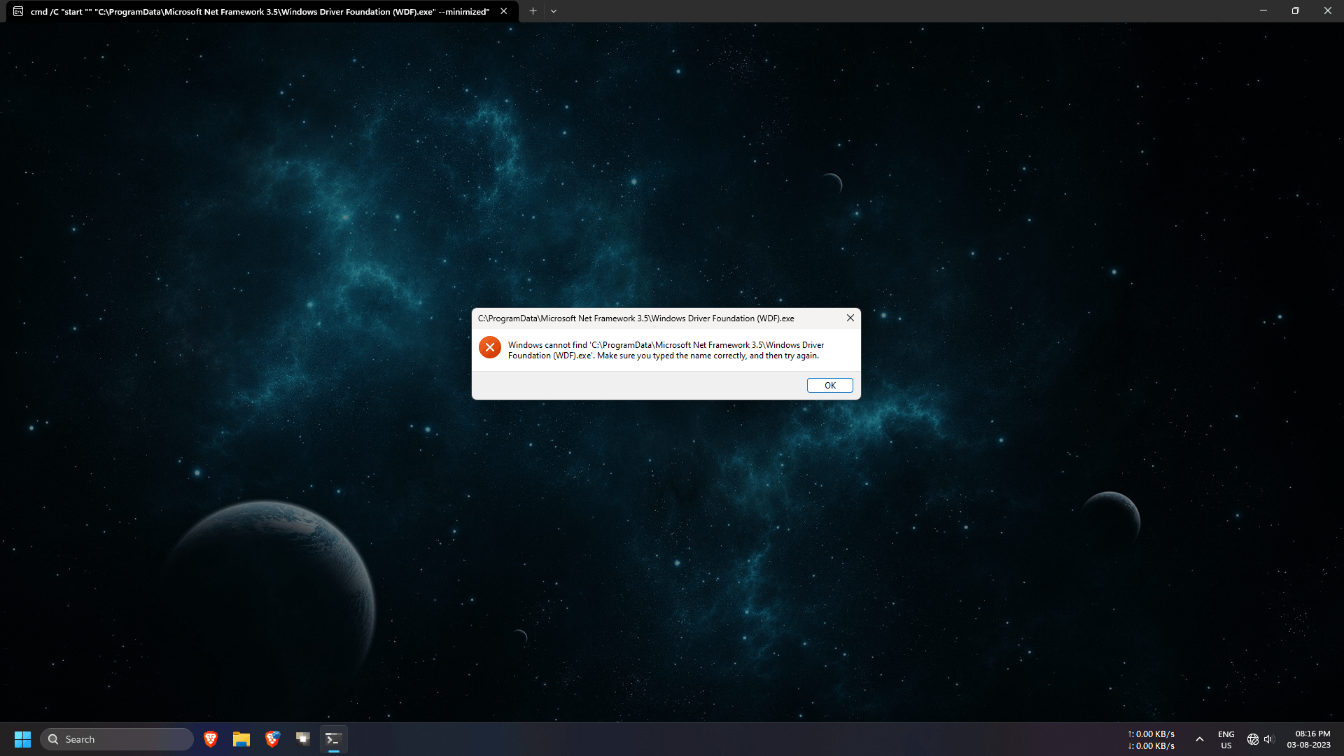 Now the first time this happened, it happened within the blink of an eye, So i researched it a bit and found out that it was a virus (as per bitdefender). So i deleted that folder from the location visible in that small window. Ever since i deleted that folder, this window pops up every time i start the computer and then i have to manually close it. its a startup script and i am unable to find it anywhere. I checked for it in the following locations.