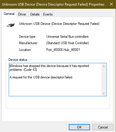 The "Unknown USB Device Error Code 43" in Windows typically indicates that a USB device connected to your computer has encountered a problem and is not functioning correctly. This issue can be caused by a variety of factors, and there are several steps you can take to try and resolve it: