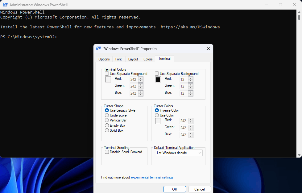 - Do other terminals or applications have the same problem? In my test environment, PowerShell and Terminal are as follows.
