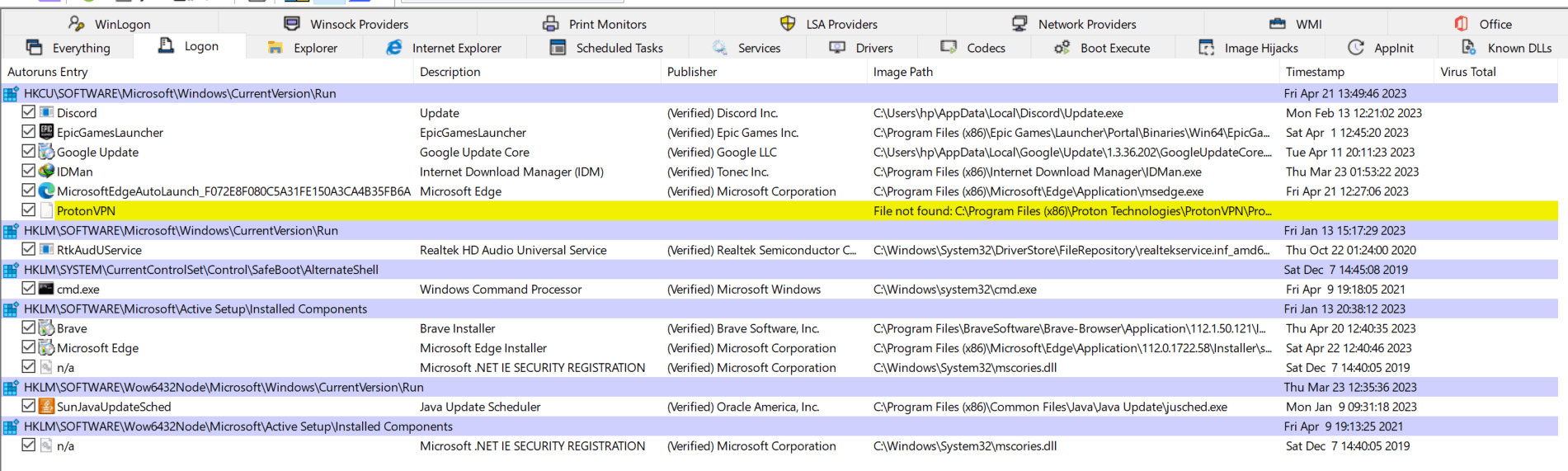 In Autoruns, select the Logon tab at the top, please provide a screenshot of all entries on that Logon tab.