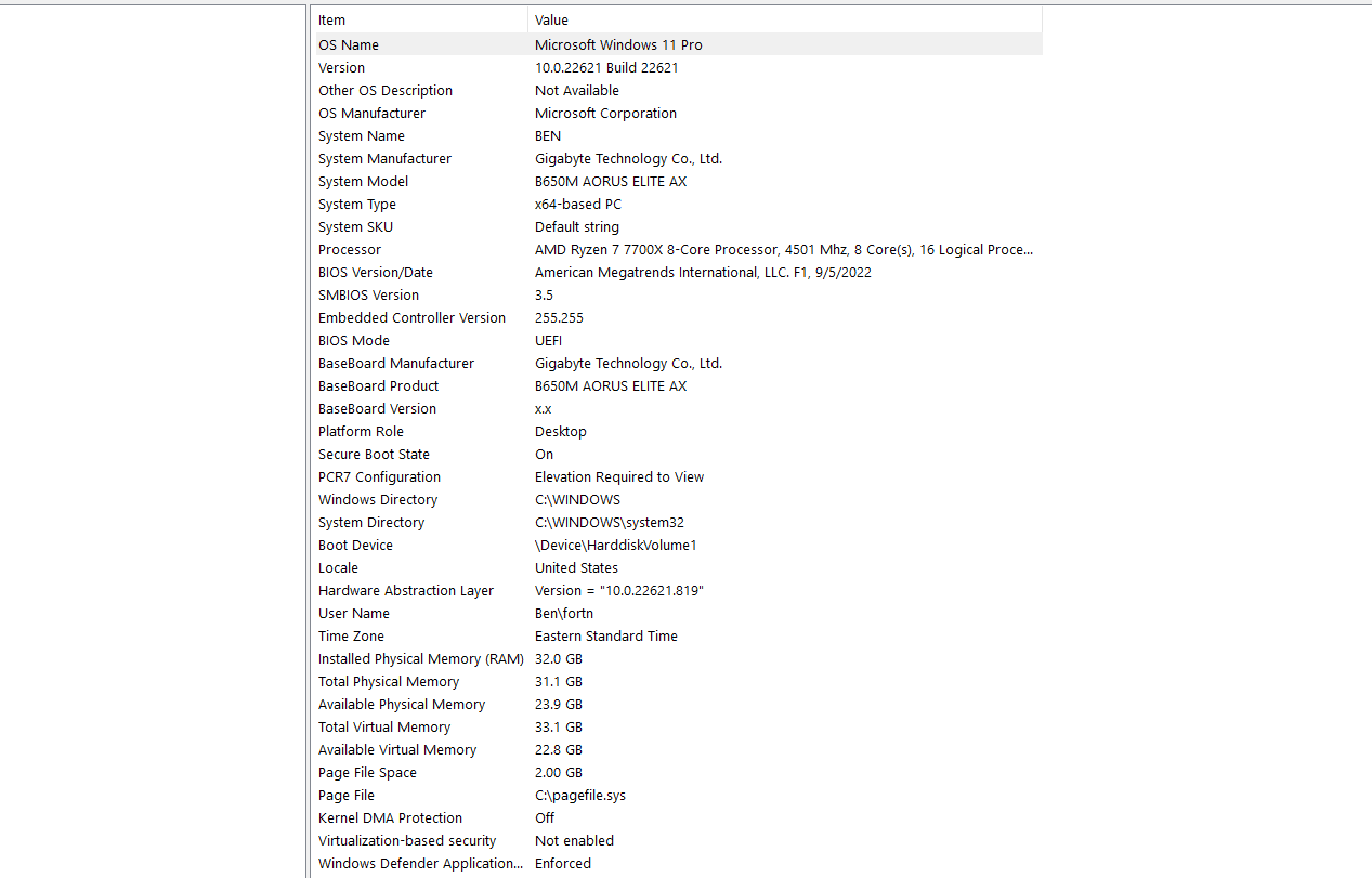 Can you please type msinfo32.exe in the search on the taskbar and hit enter, when launched, share a screenshot please (you can paste the screenshot directly in reply).