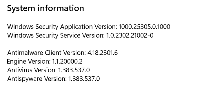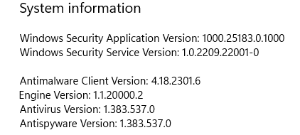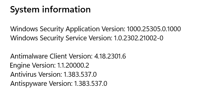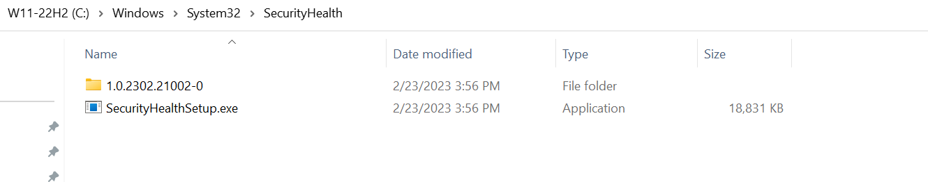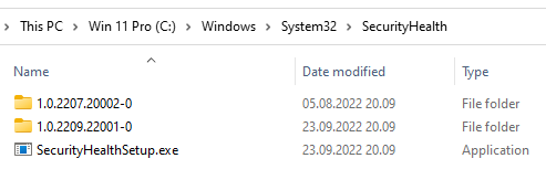 On another machine with the same Build 22621.1265 that did not receive that Security update KB5007651 1.0.2302.21002 the security dashboard looks fine without any yellow warnings, and the Windows\Systeme32\SecurityHealth folder is empty.
