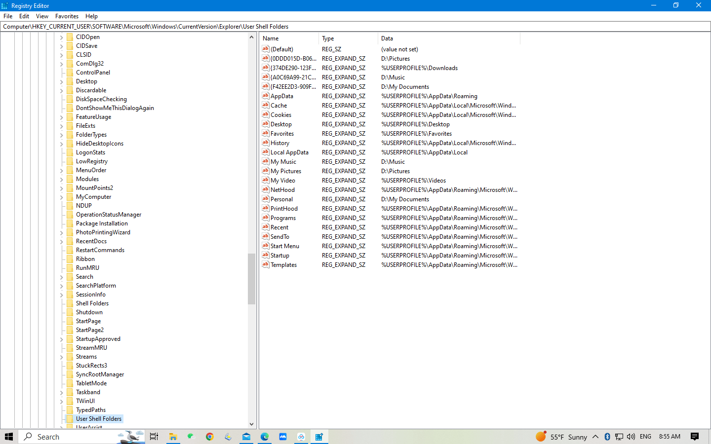 HKEY_CURRENT_USER\SOFTWARE\Microsoft\Windows\CurrentVersion\Explorer\User Shell Folders