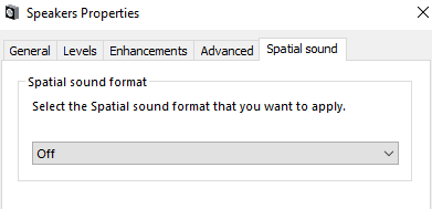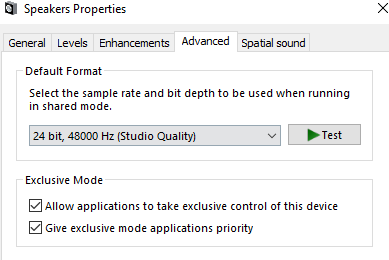 Sound Properties settings in Windows 10