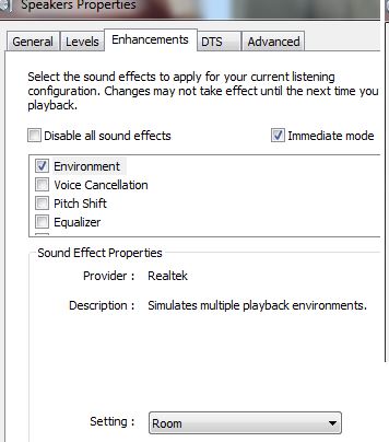 Sound Properties using the following settings, Environment: Room and no Speaker Fill.