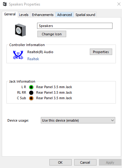 Realtek HD Audio Manager settings in Windows 10