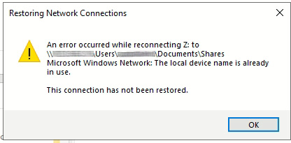 I manually disconnect network drive Z: and again map network drive, and then everything works until next restart or shutdown
