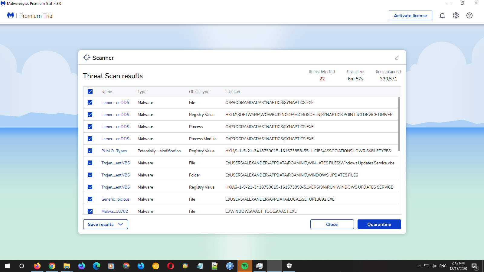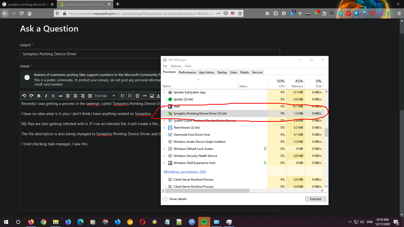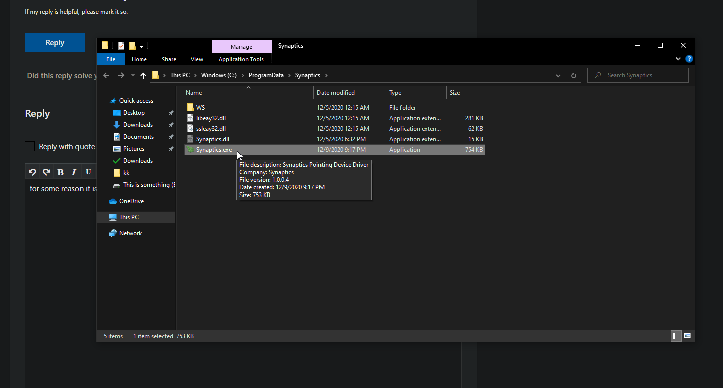 Please open Task Manager->Process Tab->Right click on the Synaptics Pointing Device Driver entry and open the file location.