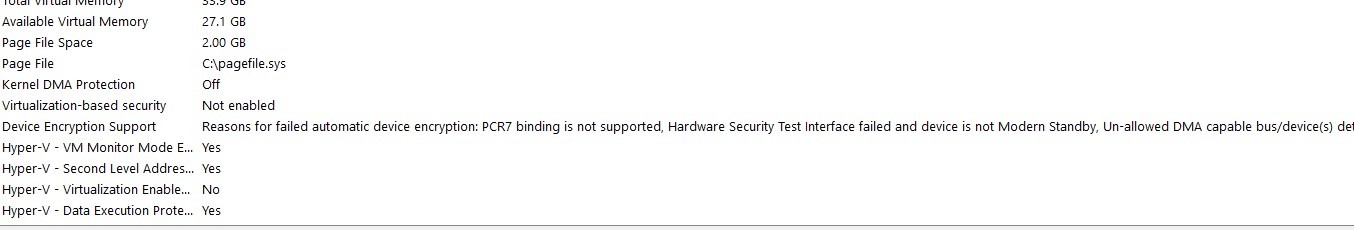 Device Encryption Support: Reasons for failed automatic device encryption: Hardware Security Test Interface failed and the device is not Modern Standby, Un-allowed DMA-capable bus/device(s) detected