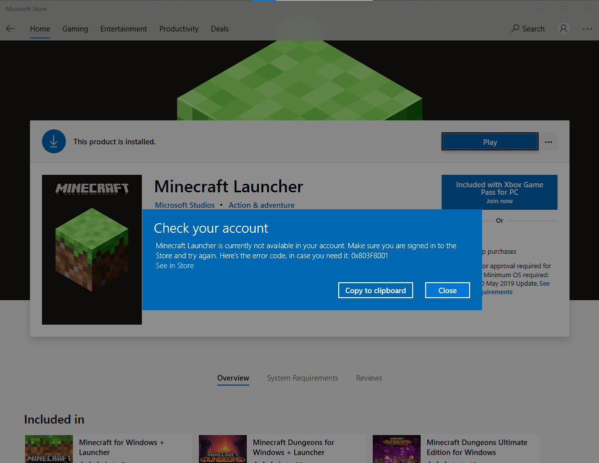 Error 0x803F8001 occurs when you launch an Xbox One game or app