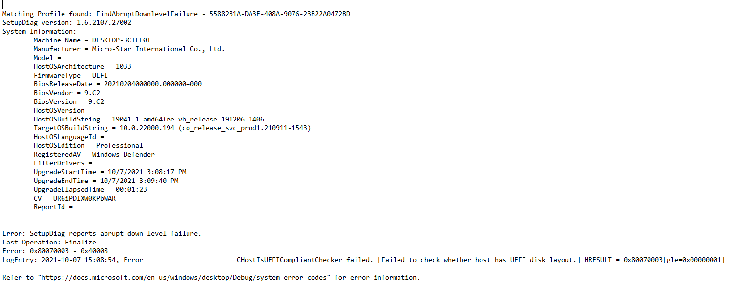 Windows downloads and starts installation perfectly but when it comes to checking PC I get this message and installation stops