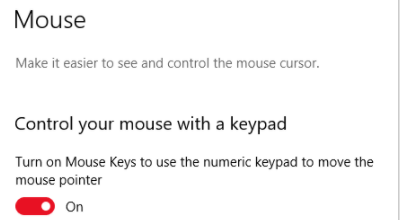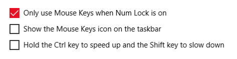 - Under Control your mouse with a keypad, disable to check mark for Only use Mouse Keys when Num Lock is on and check if the issue persists: