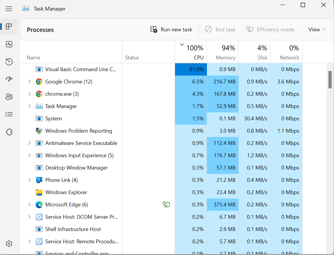 The vbc.exe is making my cpu to 100%. Even I end task Visual Basic Command Line Compiler it start again. How to fix this?