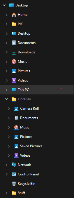 2023-01-06T21:47:09+00:00 Hmmm, I think I know what you mean. I was used to viewing the "Quick Access" list in the left hand panel of Explorer in Windows 10. When I updated to 11, this Quick Access list disappeared, and said panel looked like this: