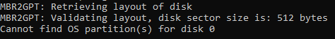 When i try to perform MBR2GPT /validate it says cannot find OS partition