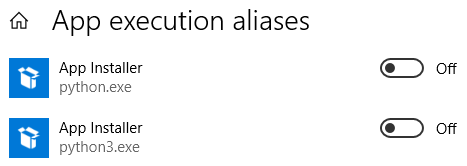 Are these two items in the App execution aliases installed by a 3rd party app ? or are they there by default ? Do all Windows 10 OSes have these two items by default ?