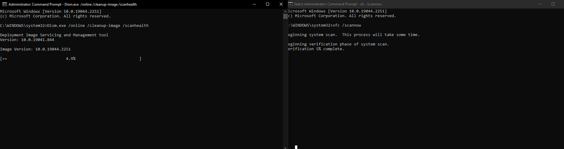 DSIM NOT WORKING SFC/SCAN NOW IS NOT WORKING IN CMD. SFC/ SCANNOW IS STUCK AT 5%