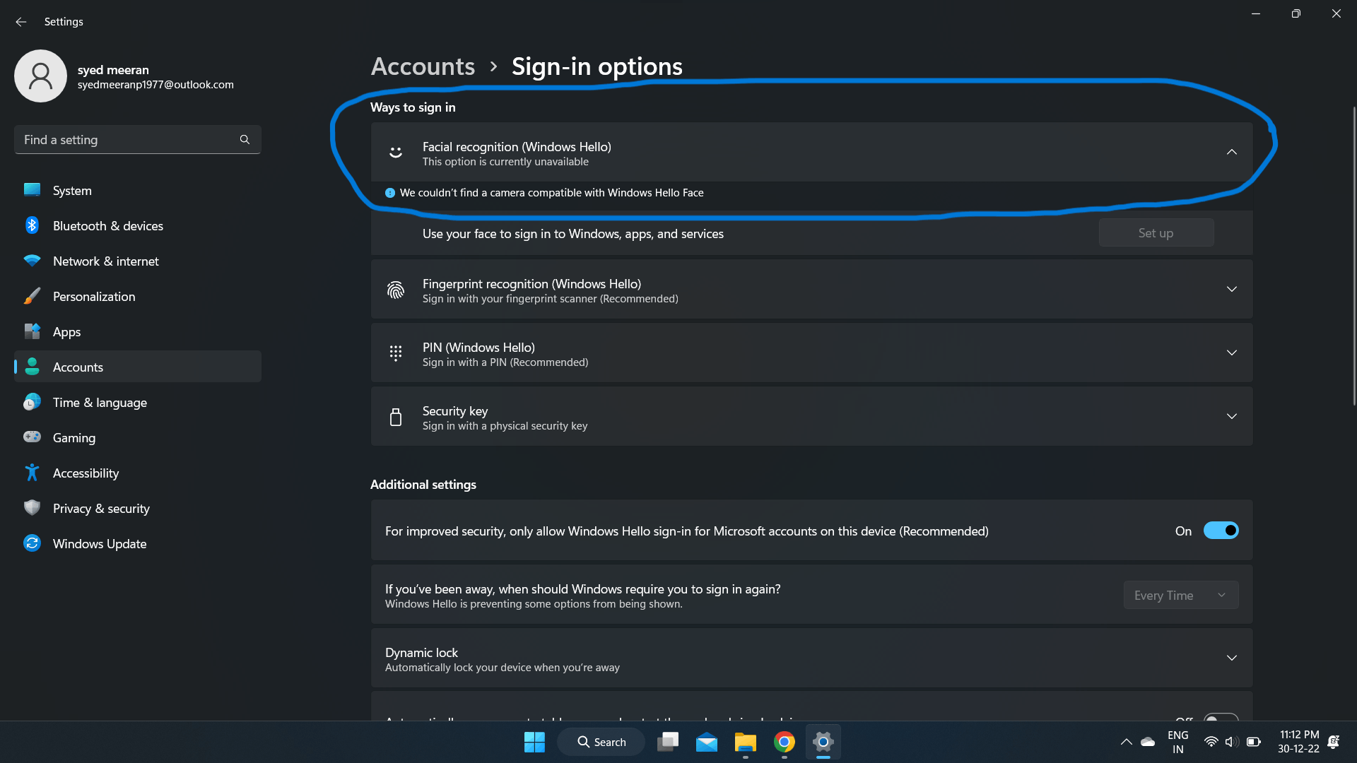 In order to enable Windows hello face recognition feature, your camera should be IR camera, but your laptop camera is not IR depending on the link below: