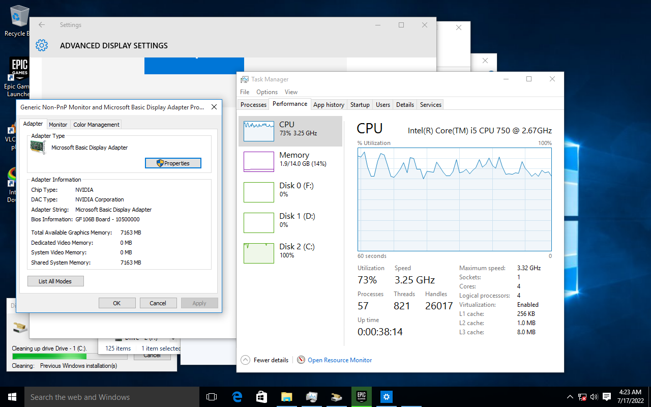 I updated my pc From windows 8.1 to Windows 10 (10240) because I am still running an HDD for Boot-up. One thing I noticed was that before installing the Graphics driver the System shared memory (which is half of your RAM 4gb = 2gb shared memory) is 7GB because I have 14GB of RAM. After the Installation of the GPU Driver I restarted my Windows and it Shows me only 3GB of Shared Memory, Total 4GB. Why is that so? is there any way to Fix this issue? I have used Windows 1909 and 21H2 and the Shared System Memory was 7GB, Total Available 8GB. Only reason I switched back to 10240 ver of Windows 10 was because in latest windows My GPU gets stuck at Idle clocks and I have to restart the GPU driver.