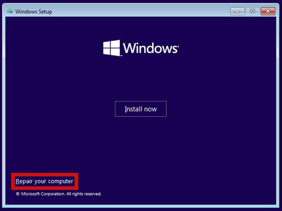 On the problematic computer insert the bootable MCT.