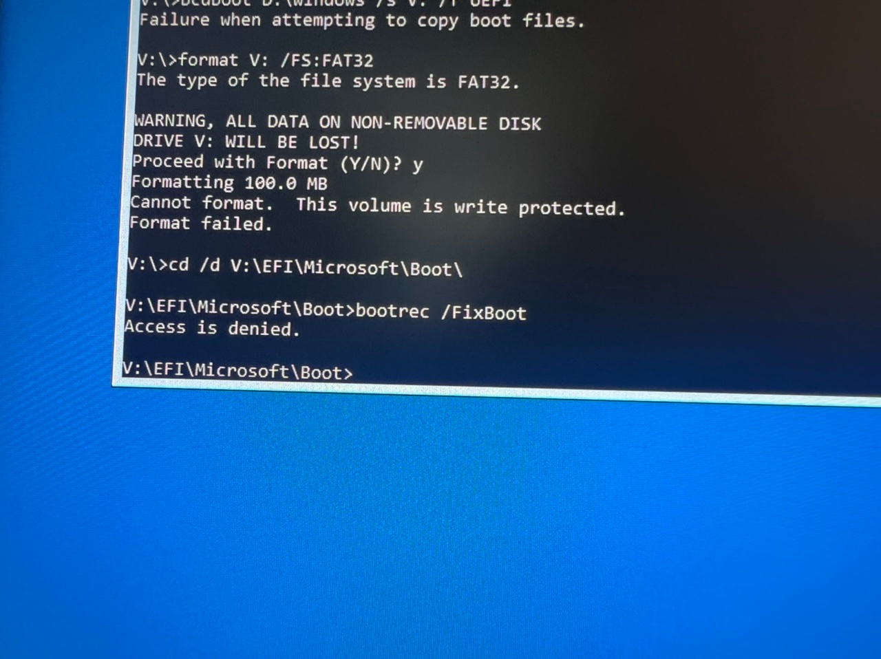 Me trying the next step of the EFI volume method, telling me my access is denied: