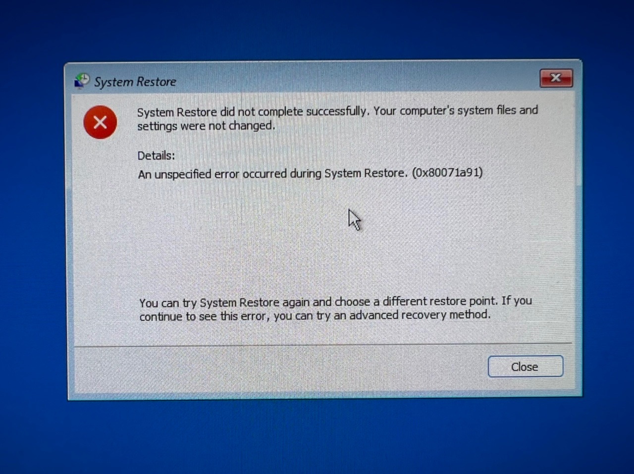 This is what happens when I try to restore before the update was installed: