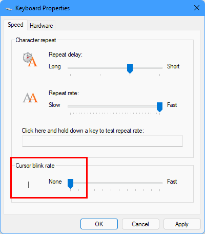 Type blink rate