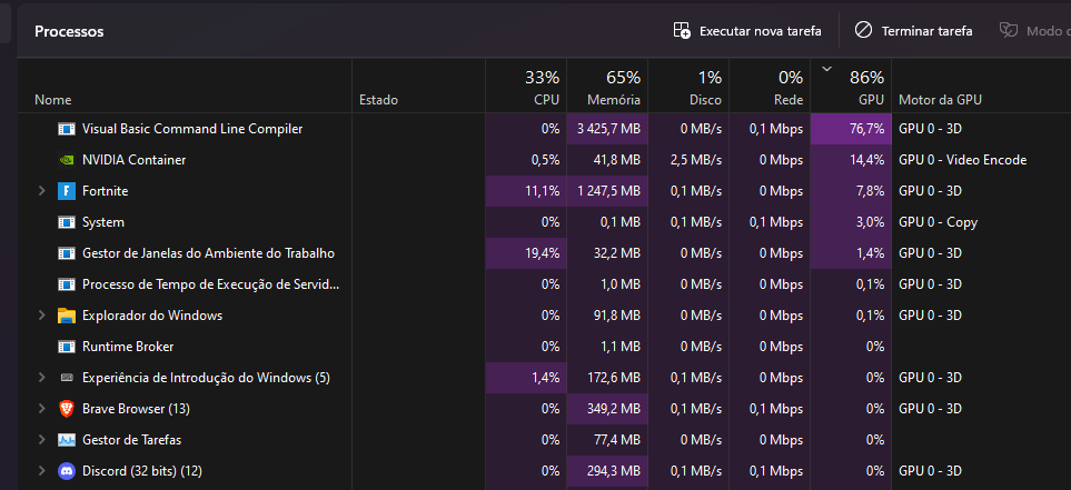 Recently the Visual Basic Command Line Compiler is running at 100% GPU as you can see in the screenshot of task manager bellow.