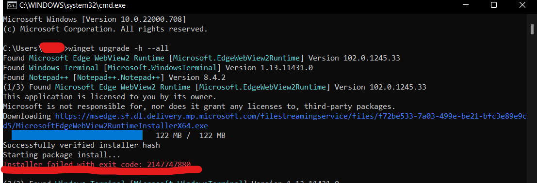 So, as you can see here while downloading Microsoft Edge WebView2 Runtime, I get this error. This is happening for the second/third time with the same application. Neither has it given more information about the error nor can I find information about the cause of the failure on Google. Please help me in this regard. Thanks in advance!
