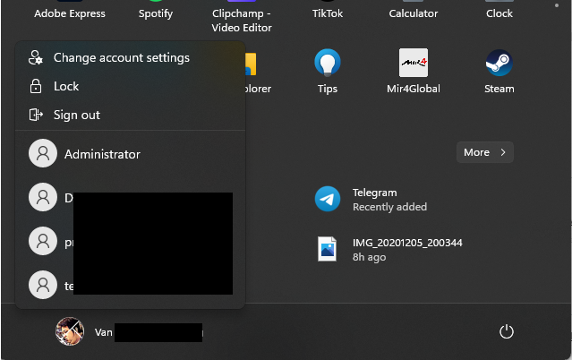 Click the start menu, at the bottom left, click your account. Click the Administrator account to switch accounts or you can sign out from your current account, then select the Admin account in the sign-in screen.