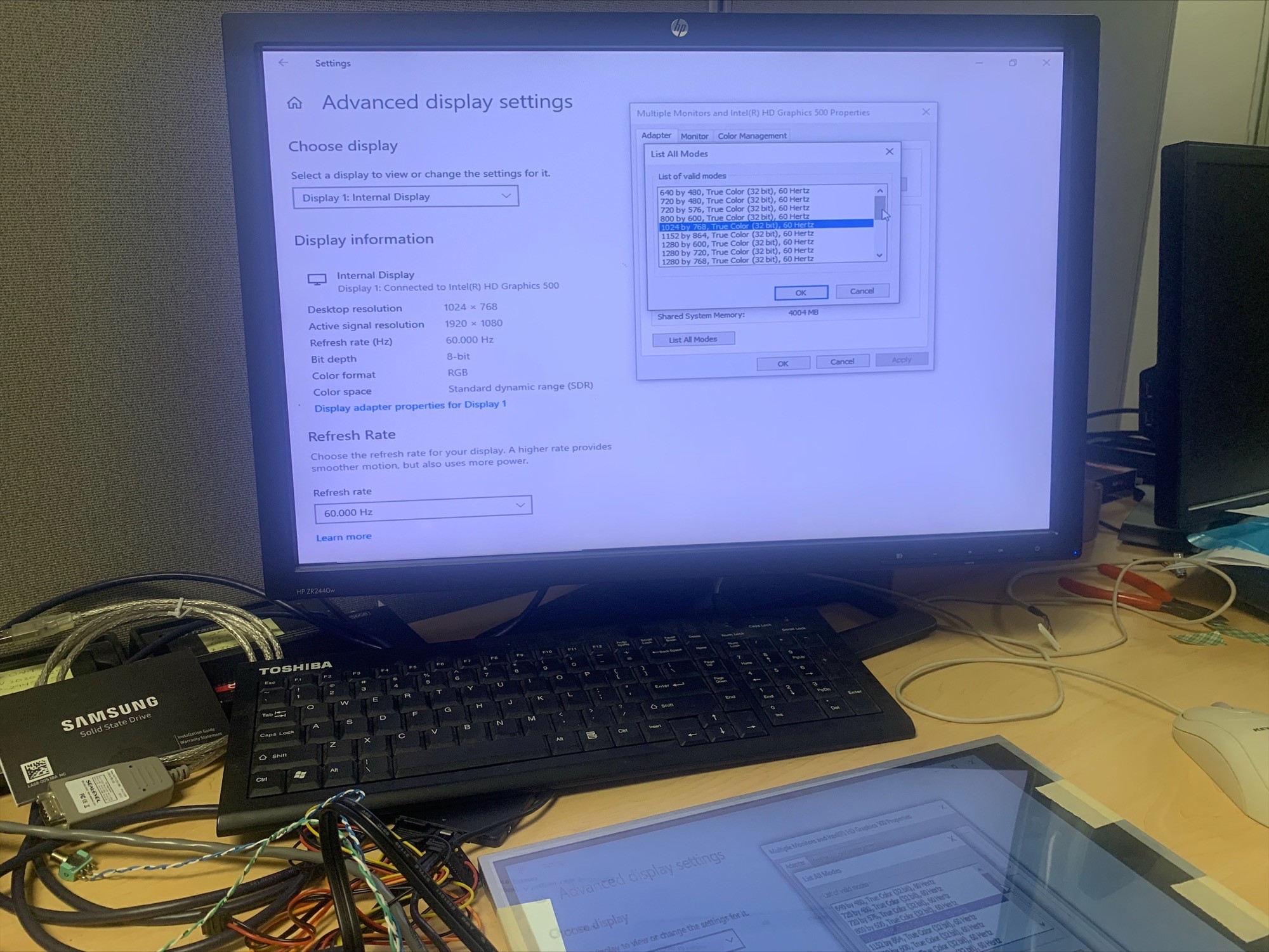 Settings - System - Display - Advanced Display Settings - Select Display - Display Adapter Properties for Display - List All Modes - Select 1024x768 and Apply