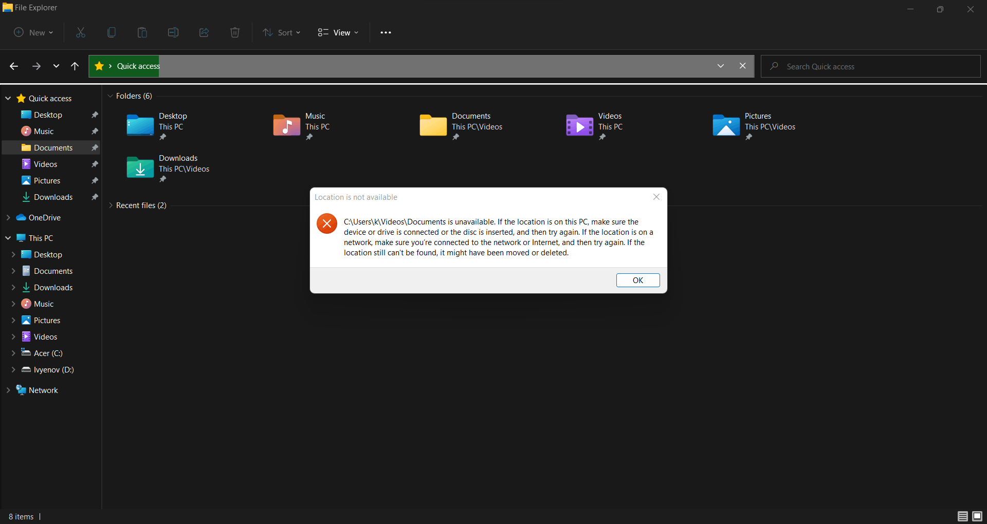 Again, DaveM121 already answered my question regarding the mixed paths that I tragically did. It was about the Videos path and Desktop path mixing up and DaveM121 resolved it! Which I am grateful for. Now I'm facing yet another issue.