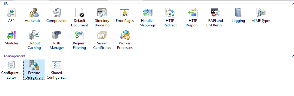 I understand that the IIS manager cannot run the PHP manager and that the missing CGI settings icon is bothering you.