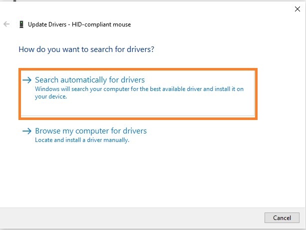 Right-click the Start icon, select Device Manager -> Bluetooth and other pointing devices -> Right-click your mouse -> Update devices -> Automatically search for drivers